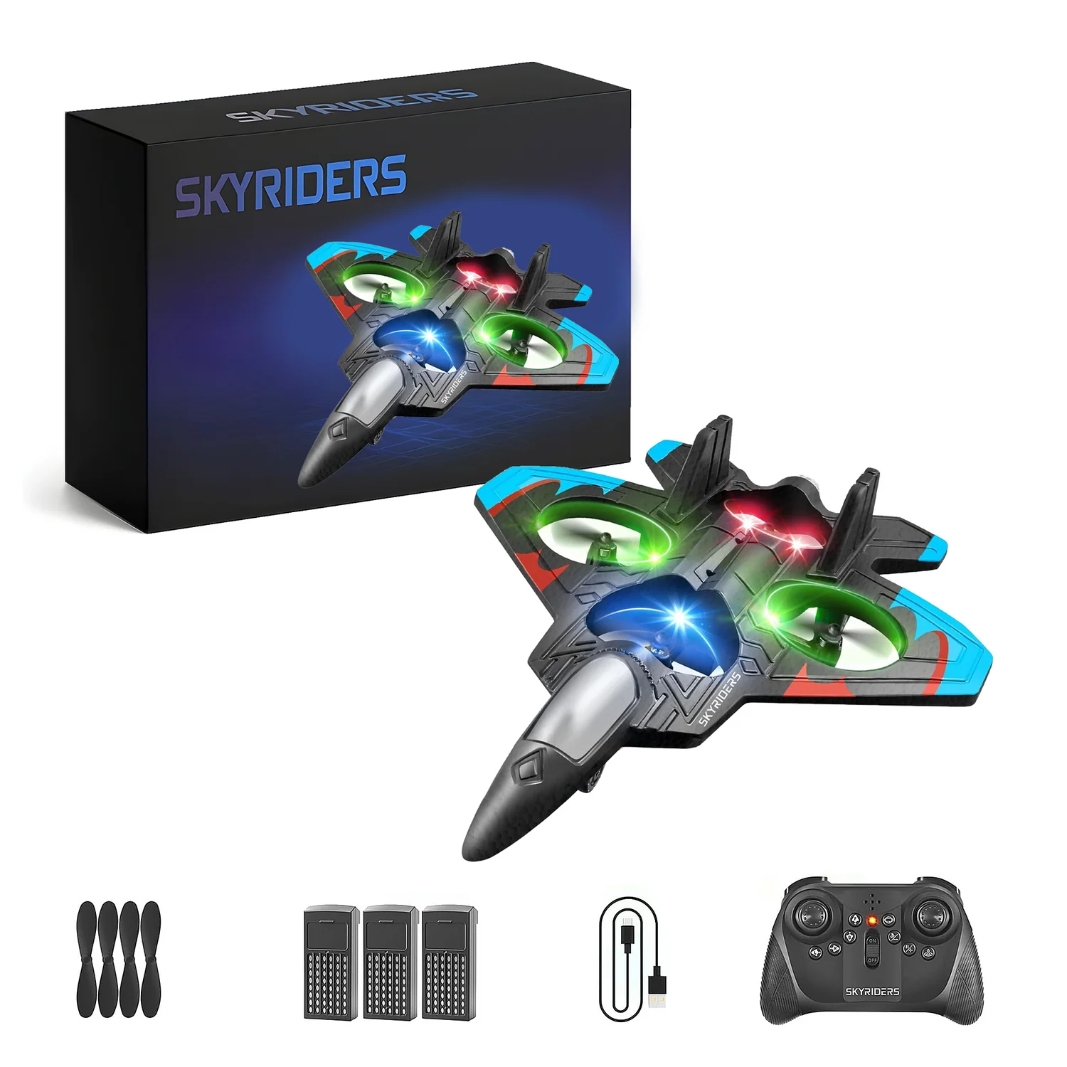 1X SkyRiders, 4x Extra Propeller, 1x Remote